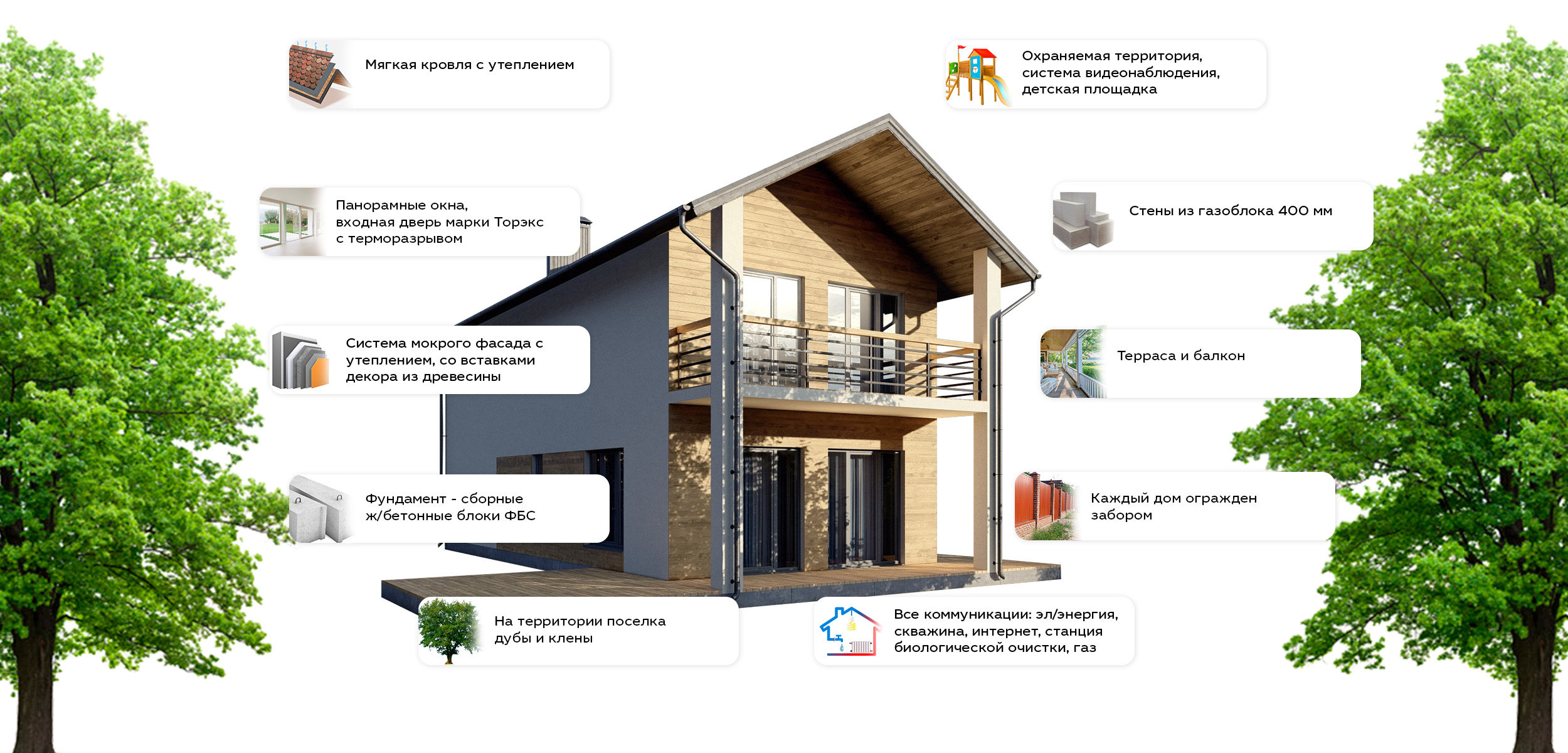КП «Дубровский» представлен 42 домовладениями на индивидуальных земельных участках. Площадь домов: от 86,14 до 144 м2, этажность: 1- и 2-этажные.